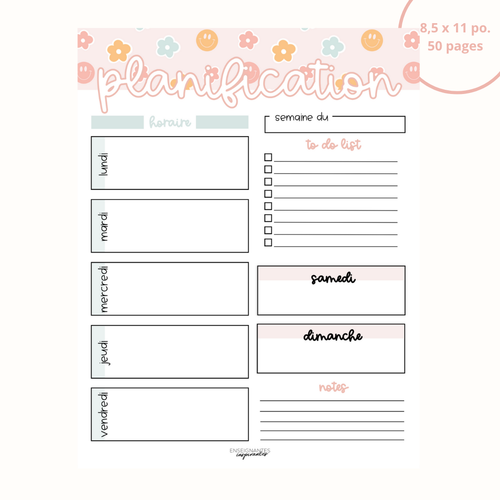Bloc-note - Planification hebdomadaire (sourires et fleurs pastels)