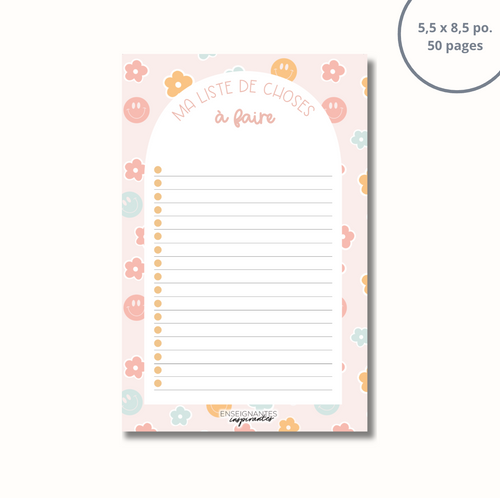 Bloc-note - Ma liste de choses à faire (sourires et fleurs pastels)